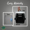 • Heavy-duty plastic shell and metal screws keep the kennel stronger for longer, Lightweight plastic design allows for easy and secure travel and transport, Ventilation openings in the kennel provide improved visibility and ample fresh air for pets, Assembles easily with metal nuts and bolts for a quick, no-hassle set up and sturdy construction, IATA Approved, This pet carrier meets most airline cargo specifications. The air travel kennel for dogs & cats also has a durable, ergonomic comfort-grip handle for comfortable transport