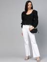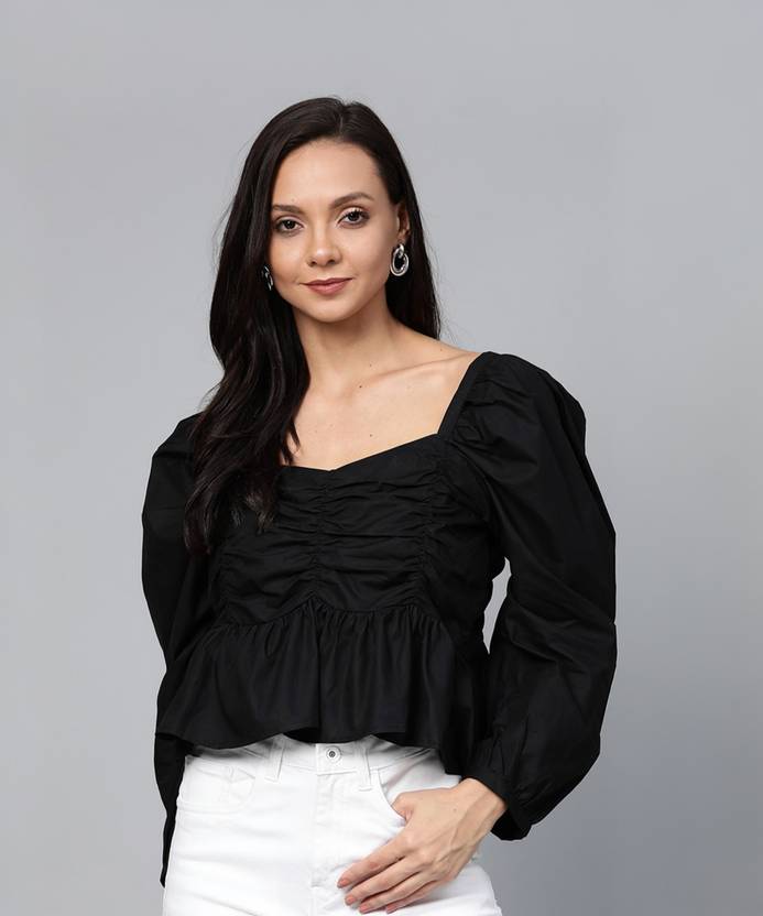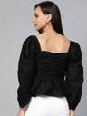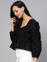 PLUSS Casual Balloon Sleeve Solid Women Black Top