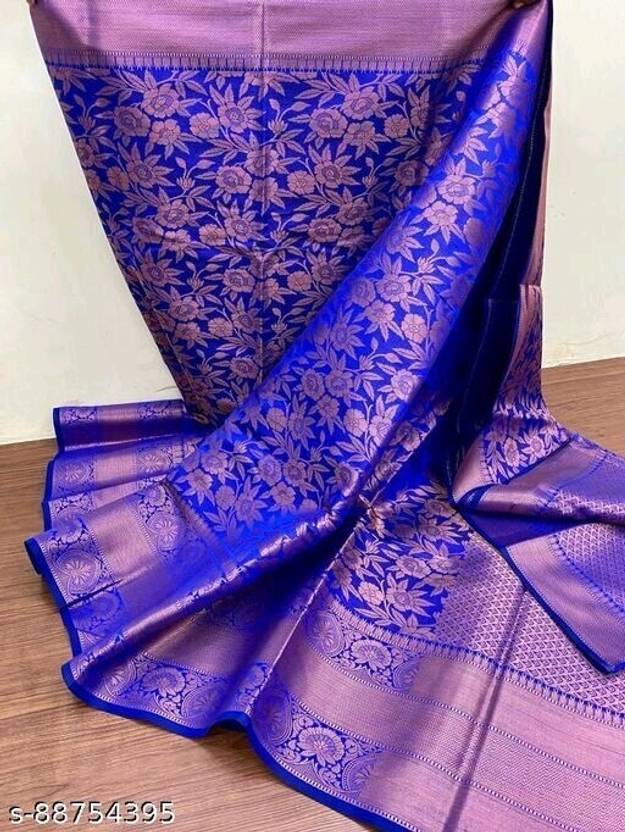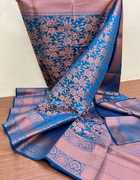 pluze fashion studio Woven Kanjivaram Pure Silk Saree (Blue)