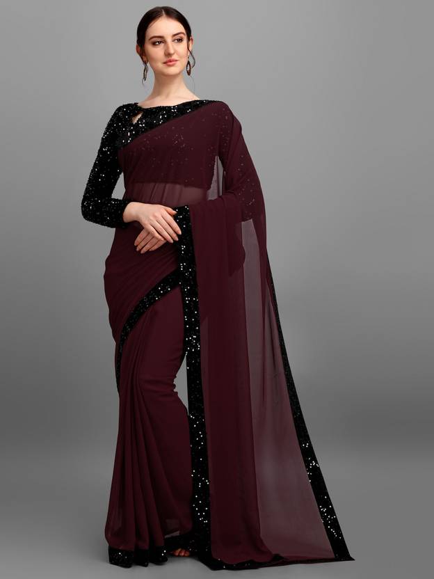 PMD Fashion Embellished Bollywood Georgette Saree (Brown)