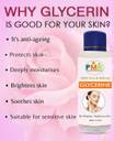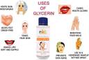 PMK Natural Herbals Care glycerin and Rosewater is great for your hair too. It replenishes lost moisture and makes hair more manageable, smoother, shiner and healthier. Plus, the natural anti-inflammatory properties of rosewater can help reduce dandruff and its stimulating properties increases scalp circulation and promotes hair growth. Rose water is a natural but gentle astringent that can soothe irritated skin and scalp. For Skin - Rosewater helps maintain the skin's pH balance, and also controls excess oil. Rose water has anti-inflammatory properties that can help reduce the redness of irritated skin. This, in turn, can help soothe the skin and reduce redness, as well as act as an anti-aging product by reducing the appearance of lines and wrinkles. Rose water can be used to lighten the skin pigmentation too. Rose water removes oil and dirt from your skin. For Acne- Prone - Get rid of acne-prone, It is a great cleanser and aids in removing oil and dirt accumulated in clogged pores. Rosewater is probably the most effective solution to treat acne-prone skin. Rose water is rich in vitamin C, balances pH levels, and because it's a natural anti-inflammatory it's not only going to work to lighten your dark spots, it's going to treat existing pimples as well. Glycerine make it perfect for cleansing your skin of makeup and other impurities you picked up during the day Glycerin lessens the size of your pores and works as an excellent toner, especially for oily skin. Glycerin act as humectant i.e. it helps it minimizing the water loss due to evaporation in oily skin and helps in keeping the skin hydrated always. You can use glycerine for oily skin and all the problems it causes, such as pimples, acne and blackheads. It also helps you get rid of bacterial infections. You can use glycerine for oily skin and all the problems it causes, such as pimples, acne and blackheads. It also helps you get rid of bacterial infections. Glycerin absolutely safe to be used for skin which is one of the reason why it is also one of the ingredient in baby products Not as the only barrier against the harsh sun, but glycerine can help, up to a certain extent. The moisturizing properties of glycerin helps in getting rid of dry, chapped lips. It is especially great for winter when lips are chapped and sometimes even bleed because of extreme dryness.