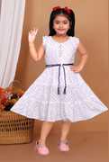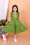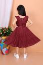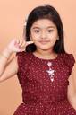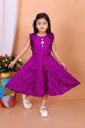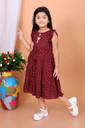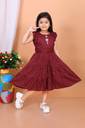 Dress your little one in this adorable maroon frock featuring a charming polka dot design. Made with soft, breathable fabric, this frock ensures all-day comfort while keeping her stylish. The ruffle sleeves, tiered flare, and waist tie add an elegant touch, making it perfect for birthday parties, family gatherings, or casual outings. Paired with white shoes, this outfit is both trendy and comfortable, giving your princess the perfect look for any occasion.