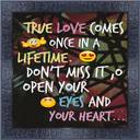 pnf 419-MOTIVATIONAL QUOTES true love come once in a lifetime dont miss it,o open your eyes and your heart with Wooden Synthetic Frame Digital Reprint 13 inch x 13 inch Painting (With Frame)