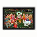 pnf Lord Krishna Lifted The Mountain of Govardhan with Wooden Synthetic Frame Digital Reprint 13.5 inch x 19 inch Painting (With Frame)