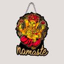 pnf Namaste Ganpati Quote Printed Home Wall Door Sign Hanging (Brown)