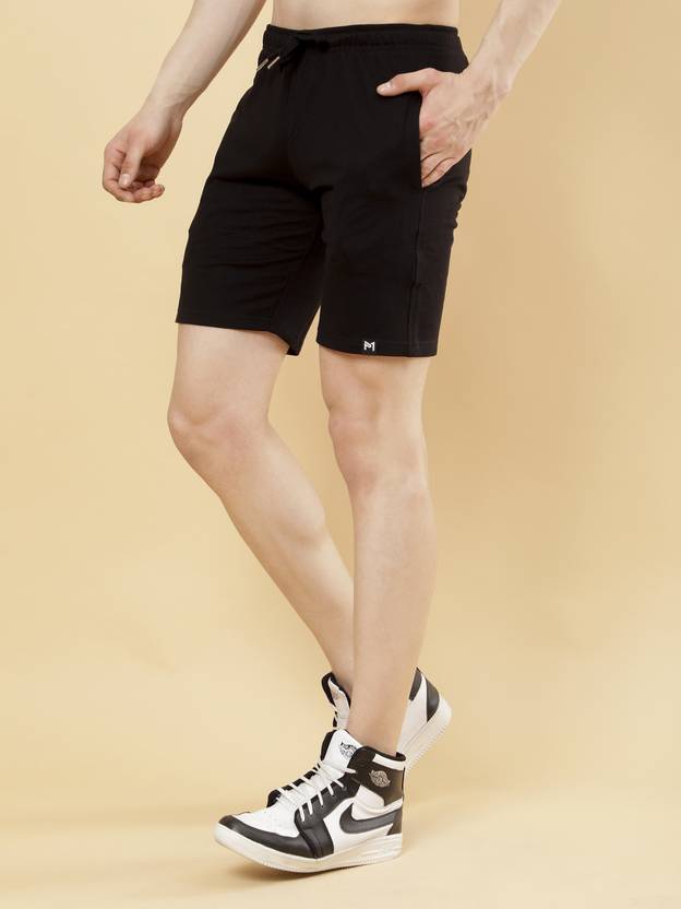 Stride in Style: Pockman Men's Regular Fit Black Cotton Terry Shorts