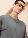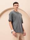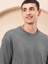 PockMAN Men Solid Round Neck Pure Cotton Grey T-Shirt