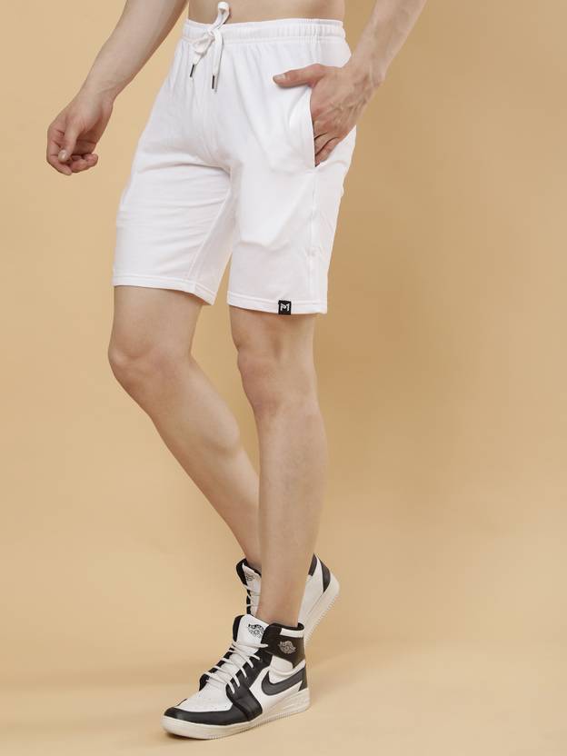 Stride in Style: Pockman Men's Regular Fit White Cotton Terry Shorts
