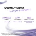 Incredible battery experience powered by a 6000 mAh battery, 33 W fast charging, and 10 W Reverse charging