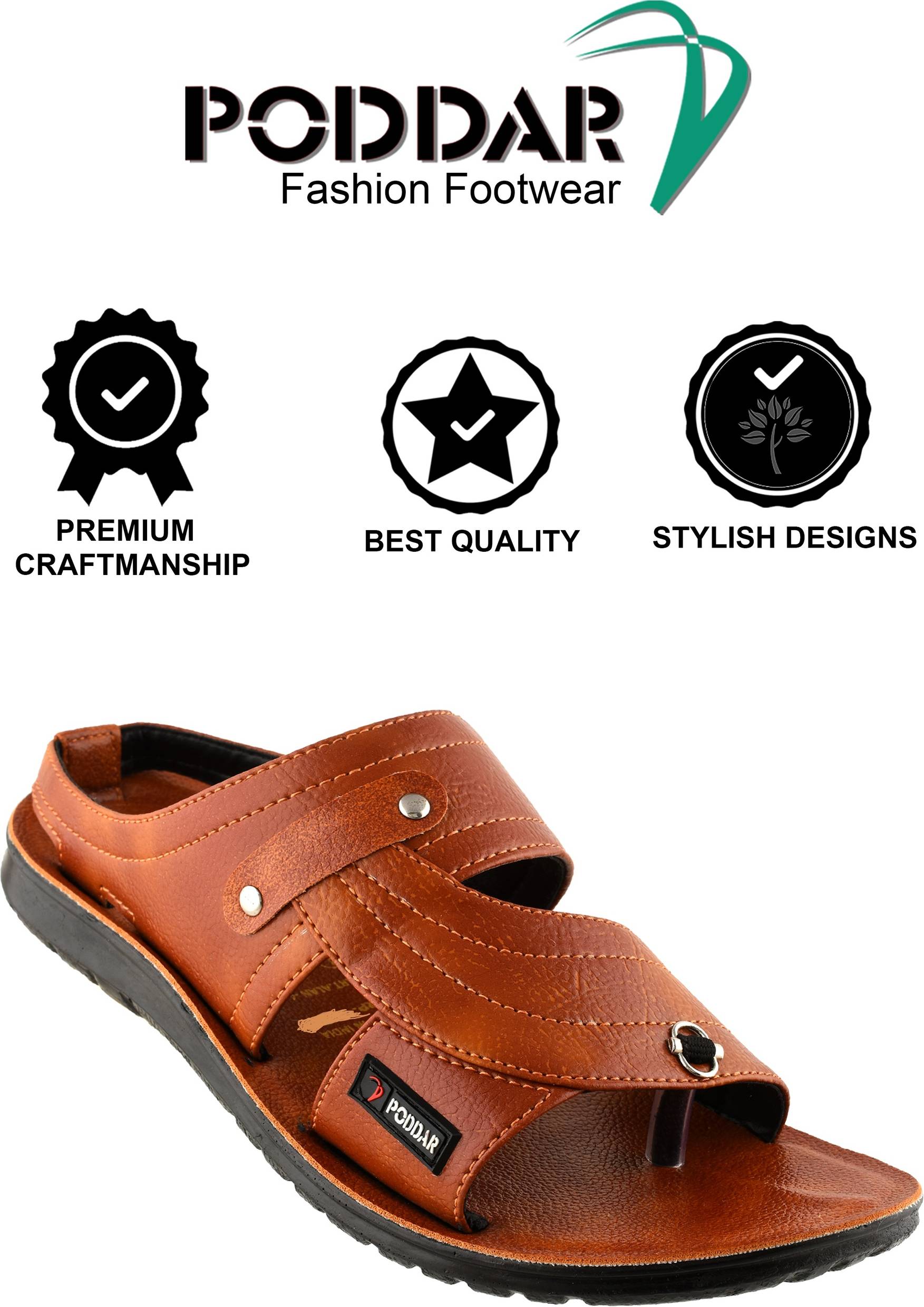 PODDAR Men Trending PU Men Sandals Stylish Comfortable Daily Wear Slippers (Tan , 11)