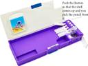 poksi Big Pencil Box with calculator and Button operated pencil stand Inside | Space Panda Pencil Box for Kids Art Plastic Pencil Box (Set of 1, Purple)