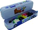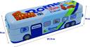 poksi DOUBLE DECKER CITY TRAVEL BUS SHAPE PENCIL BOX cartoon Art Metal Pencil Box (Set of 1, Blue)