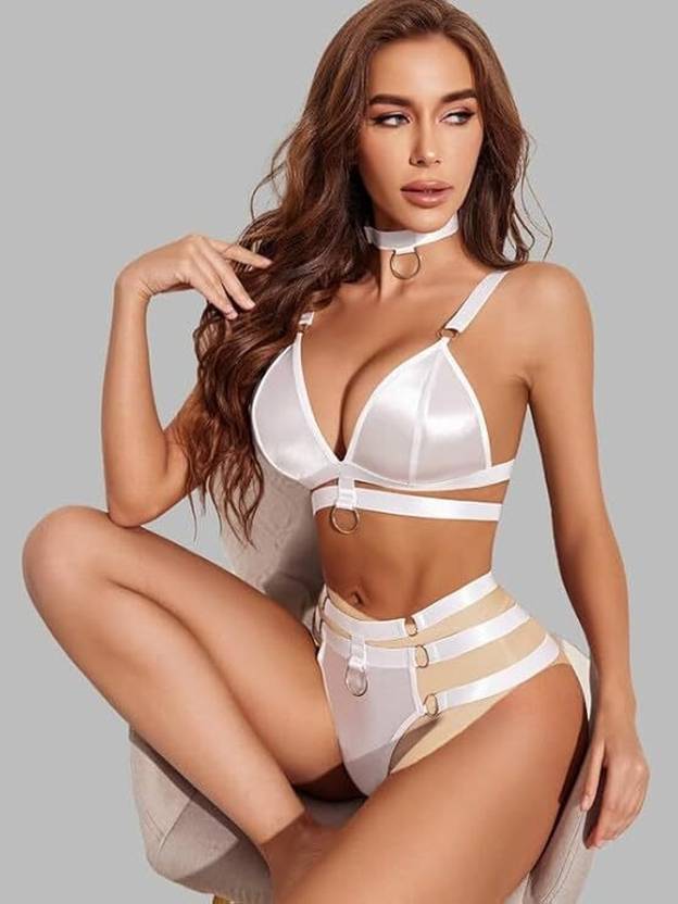 poksi Bra & Panty Set Self Design White Lingerie Set
