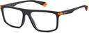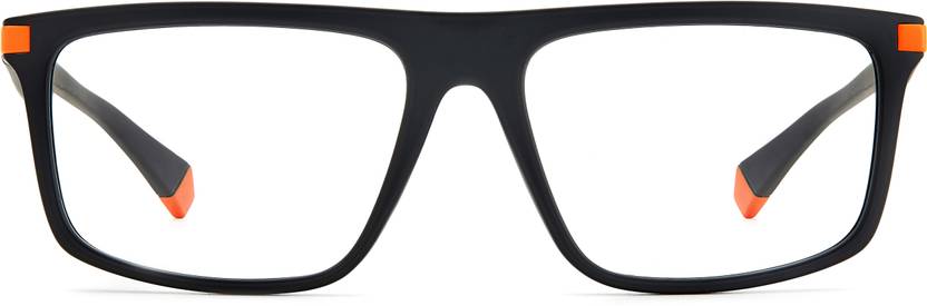 These men's eyeglasses are in eco-polyamide, a type of plastic derived from natural sources. The rectangular front is defined by clean lines along the top and a pop of colour: a metal detail that extends onto the sporty temples. The must-have, iconic contrast detail on the end tips lets everyone know they're by Polaroid.