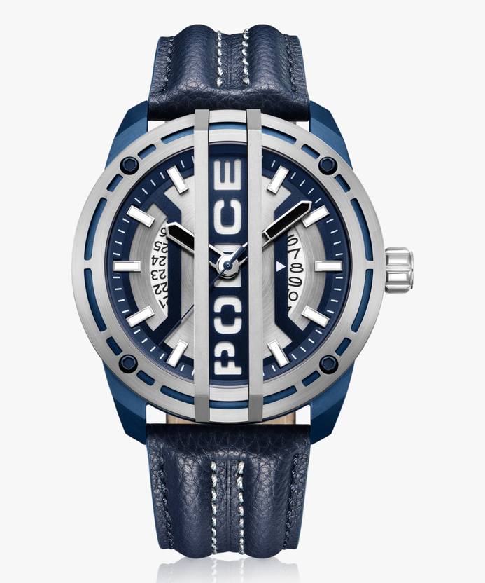 Police Extreme Rebel Police With Date Silver Dial Blue Leather Strap Analog Watch - For Men