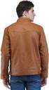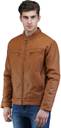 US Police Men's Mandarin Collar, Cross Design, Casual Leather Jacket Brown