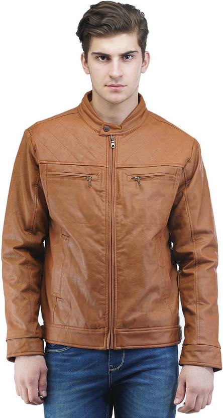 Men Solid Leather Jacket