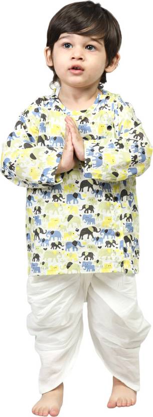 POLKA TOTS Baby Boys Wedding Angarkha and Dhoti Pant (Yellow Pack of 1)