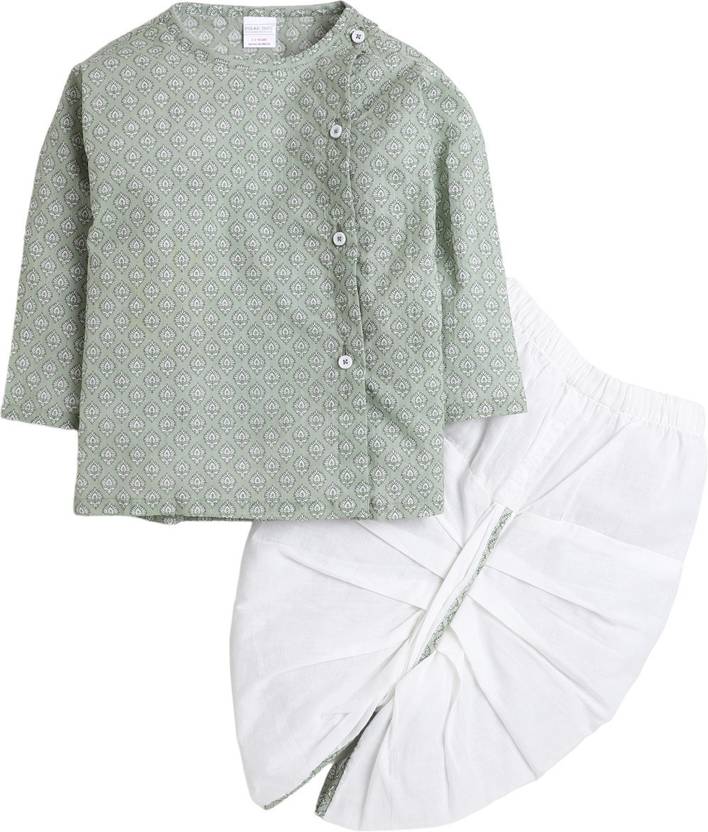 POLKA TOTS Boys Festive & Party Angarkha and Dhoti Pant (Light Green Pack of 1)