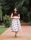 POLLEN Women Printed Viscose Rayon Flared Kurta (White)