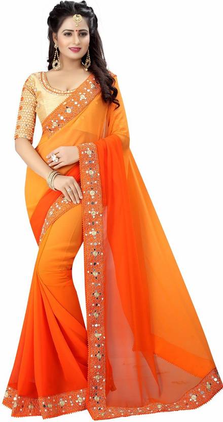 Self Design Daily Wear Georgette, Lace Saree (Orange)