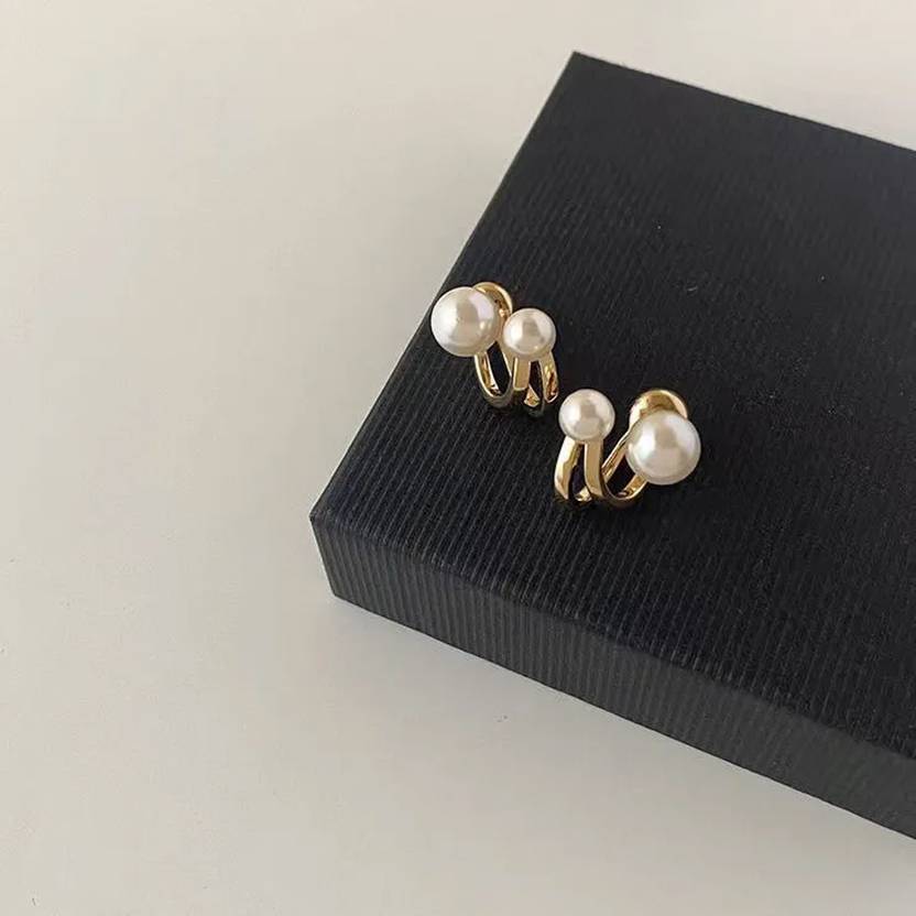 polluxcraft PolluxCraft Korean Earrings For Women & Girls /Double Pearl Earrings Pearl Alloy Stud Earring