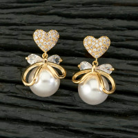 Flaunting a timeless design, these earrings feature a classic heart-shaped stud paired with a lustrous pearl drop. The heart shape adds a touch of sweetness and femininity, symbolising love and affection. The pearl, known for its elegance, brings grace and refinement to the piece. High-quality cubic zirconia stones enhance the earrings with a brilliant sparkle, resembling the luxury and elegance of diamonds. This combination creates a sophisticated and versatile accessory suitable for any occasion.