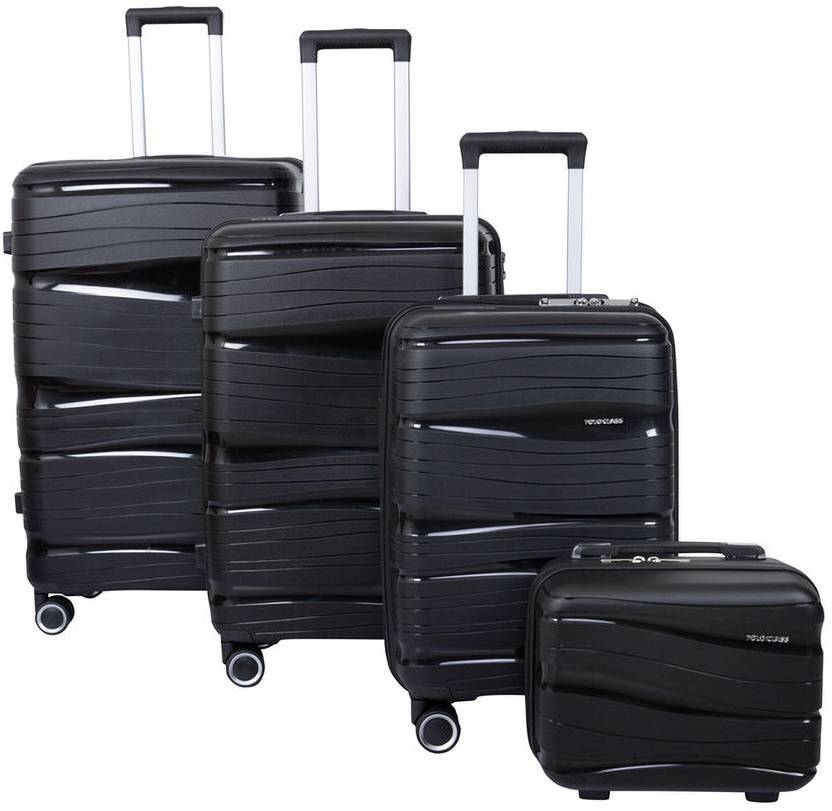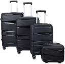 Hard Body Set of 4 Luggage 4 Wheels - 3Pc Set Trolley (20/24/28 Inch) with vanity-Black - Black