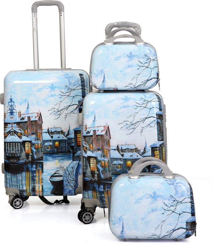 POLO CLASS Polycarbonate Blue 2Pc set Trolley Bag with 2Pc Vanity (55 ltr) Cabin Suitcase 4 Wheels - 22 Inch