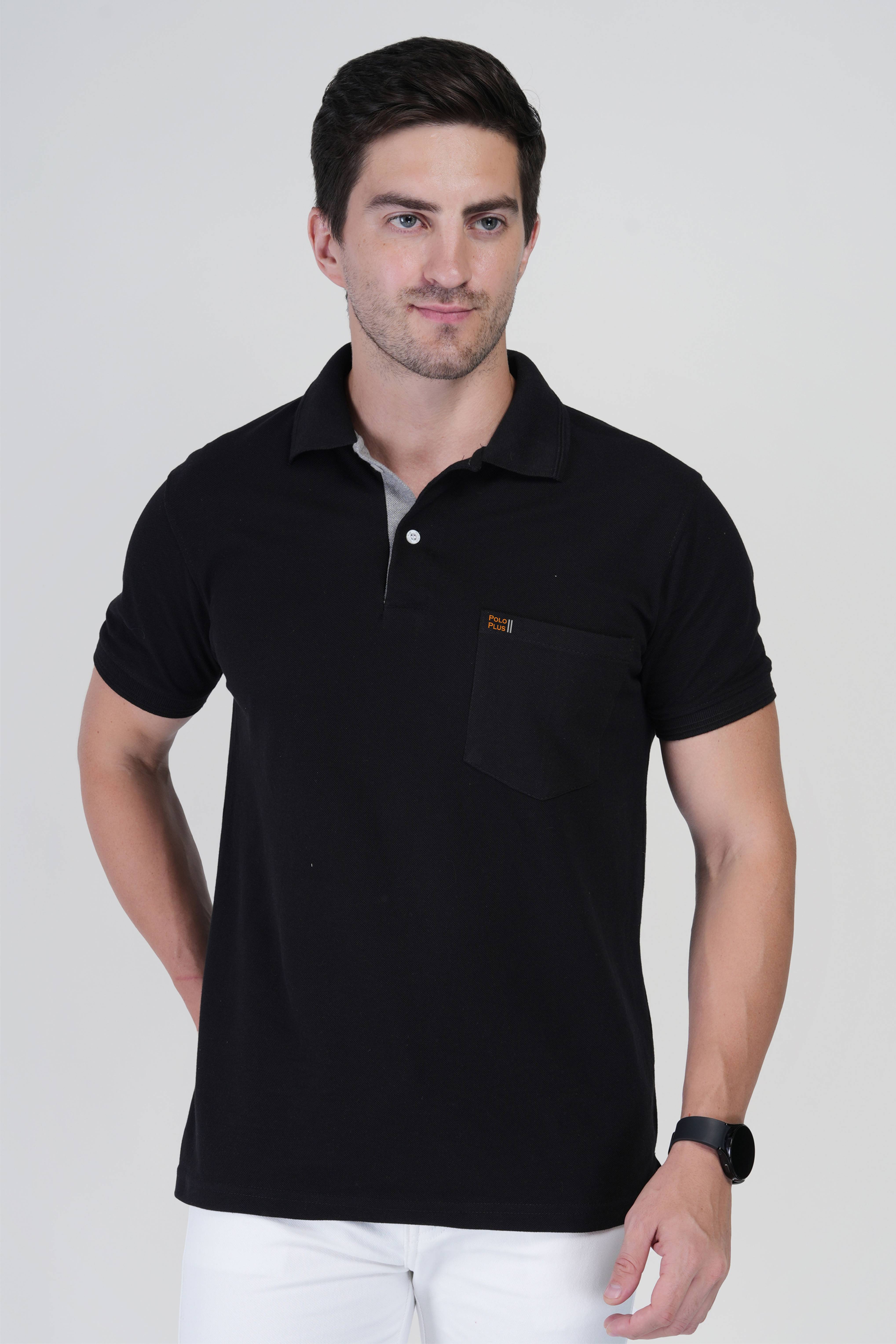Polo Plus Solid Men Polo Neck Black T-Shirt