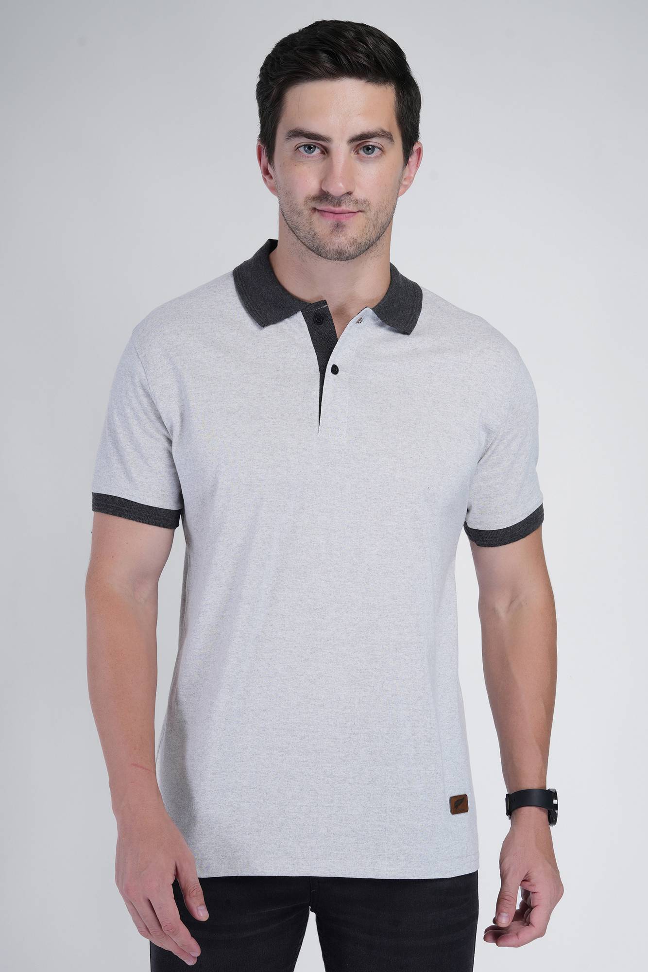 Polo Plus Men Solid Polo Neck Pure Cotton Grey T-Shirt