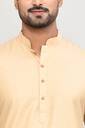 Upgrade your ethnic wardrobe with this elegant Cotton Kurta & Pyjama Set, a perfect blend of traditional design and modern comfort. Crafted with high-quality cotton silk fabric, this kurta features a subtle self-design pattern that adds a touch of sophistication without overpowering the look. The Mandarin collar and buttoned placket offer a clean and classic appearance, making it suitable for a wide range of occasions – from festive gatherings to weddings, cultural events, and family functions. The kurta is tailored in a regular fit, ensuring comfort while maintaining a sharp silhouette. The full sleeves make it versatile for all seasons, whether worn on its own or layered with a Nehru jacket for a more formal touch. Paired here with off-white churidar pants, the rich blue color contrasts beautifully, offering a regal aesthetic that’s sure to turn heads. This kurta is lightweight, breathable, and designed to keep you comfortable all day long. The fabric’s slight sheen adds a festive charm, making it ideal for Diwali, Eid, Navratri, or wedding ceremonies. Whether you're dressing up for a traditional event or simply want to showcase your heritage with style, this kurta makes a standout addition to any modern man's ethnic collection. Care Instructions: Dry clean or gentle hand wash recommended to maintain color and fabric texture. Ideal For: Festive wear, Traditional functions, Cultural events, Parties, Religious ceremonies, and Gifting.