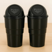 Polyhomes Car Interior Dustbin For Car Mini Trash Bin/Compact Portable Trash Can For Car Plastic Dustbin (Black, Pack of 2)