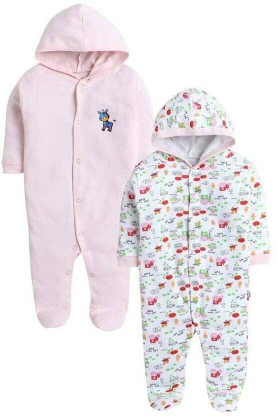 POOJA BABY Romper For Baby Boys & Baby Girls Printed Cotton Blend (Pink, Pack of 2)