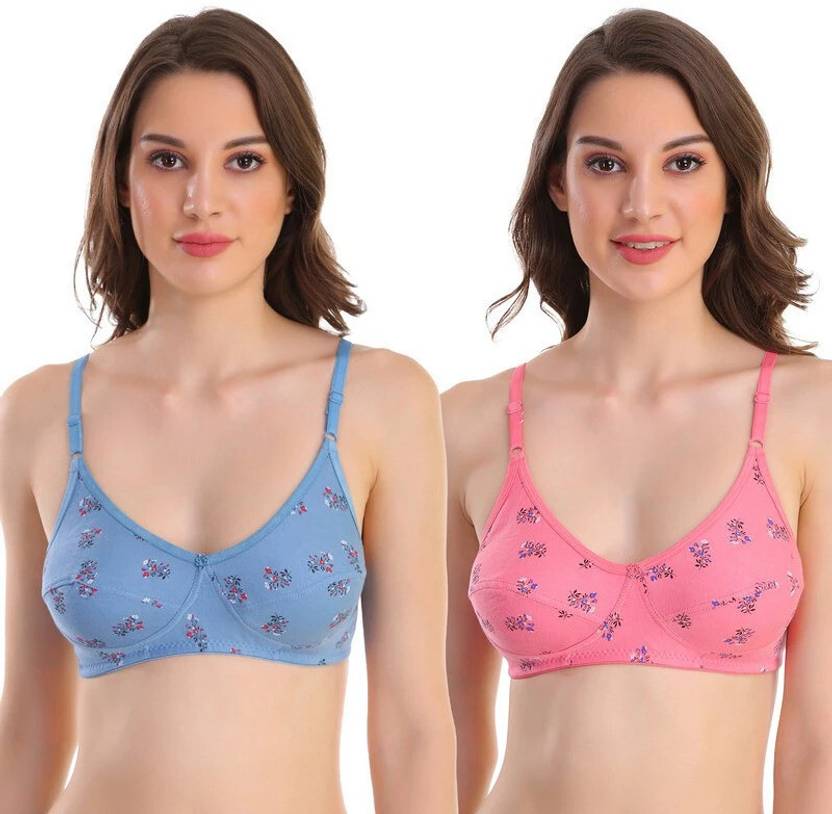 POOJA RAGENEE Pure Cotton Printed Bra Women Full Coverage Non Padded Bra (Multicolor)