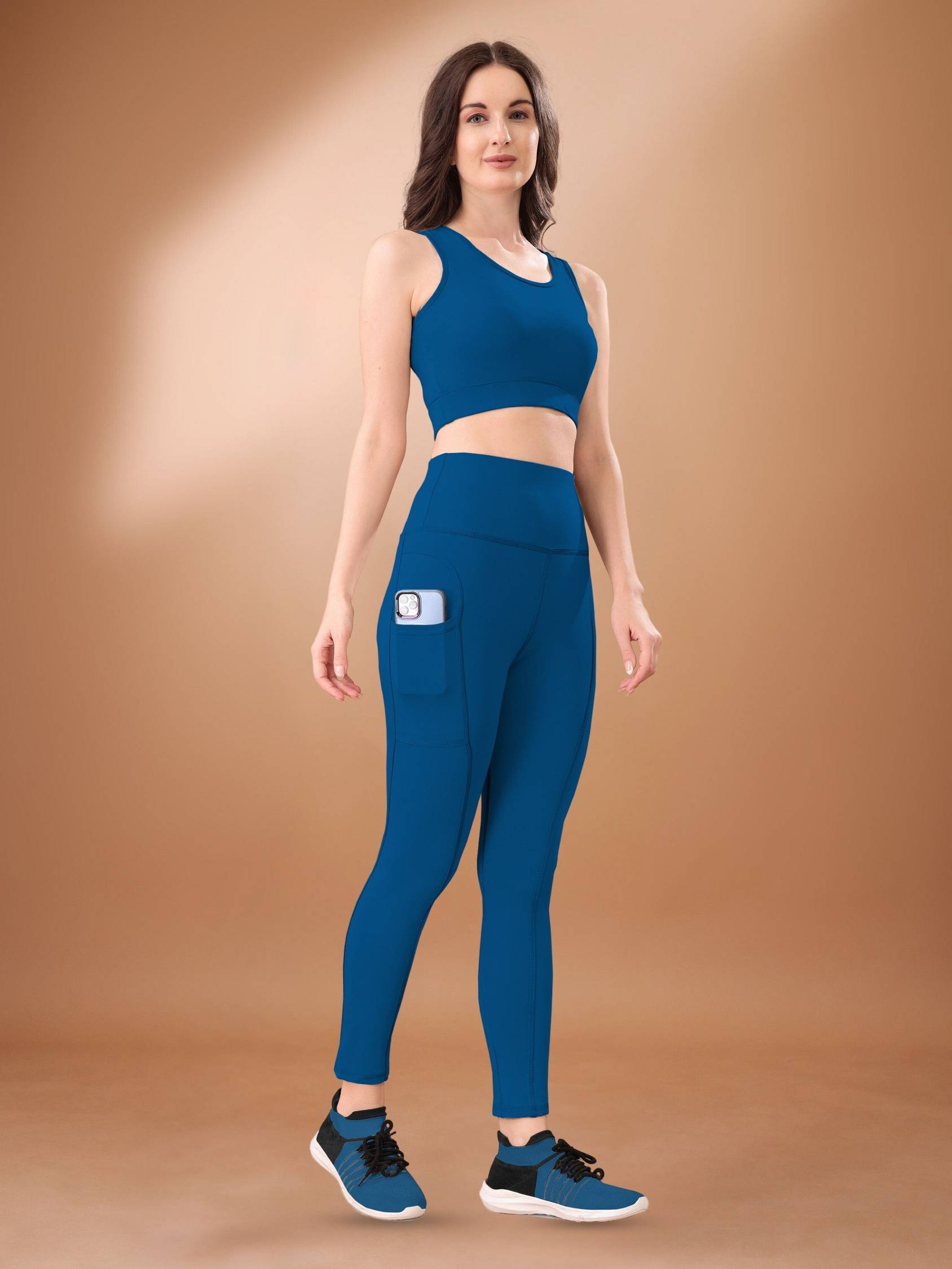 Elevate your workout wardrobe with the Women’s 2-Piece Workout Set. This all-in-one gym wear tracksuit includes a high-waist pair of leggings and a stylish sports bra, designed to support your active lifestyle while offering unbeatable comfort and flexibility. Perfect for yoga, running, gym workouts, or just lounging at home, this sports running suit provides a sleek, coordinated look that’s both functional and fashionable. The high-waist leggings are not only flattering but also equipped with a side phone pocket, making it easy to carry your phone or small essentials during your workouts. No more worrying about where to place your phone while running or stretching — everything you need is right at your fingertips. Crafted from moisture-wicking and breathable fabric, this workout set ensures that you stay dry and comfortable, even during your most intense workouts. The fabric's soft texture feels gentle against the skin, allowing for maximum mobility and comfort throughout the day. Whether you’re running, doing yoga, or simply relaxing, this 2-piece co-ord set delivers the perfect combination of support, style, and functionality. The sports bra provides gentle support, and the leggings hug your curves in all the right places, making it a go-to option for both performance and style.