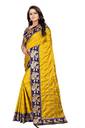 poonam s tex Checkered Bollywood Silk Blend Saree (Yellow)
