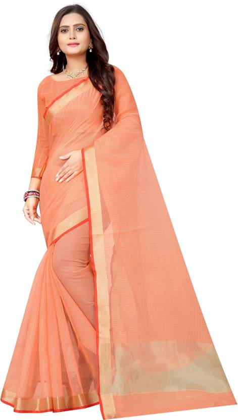 poonam s tex Striped Bollywood Cotton Silk Saree (Orange)