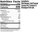Calories-550, Total Fat-37gm, Saturated Fat-35gm, Trans Fat-0gm, Cholesterol-0gm, Sodium-90mg, Total Carbs-54gm, Dietary Fibre-7gm, Total Sugars-2gm, Protein-3gm