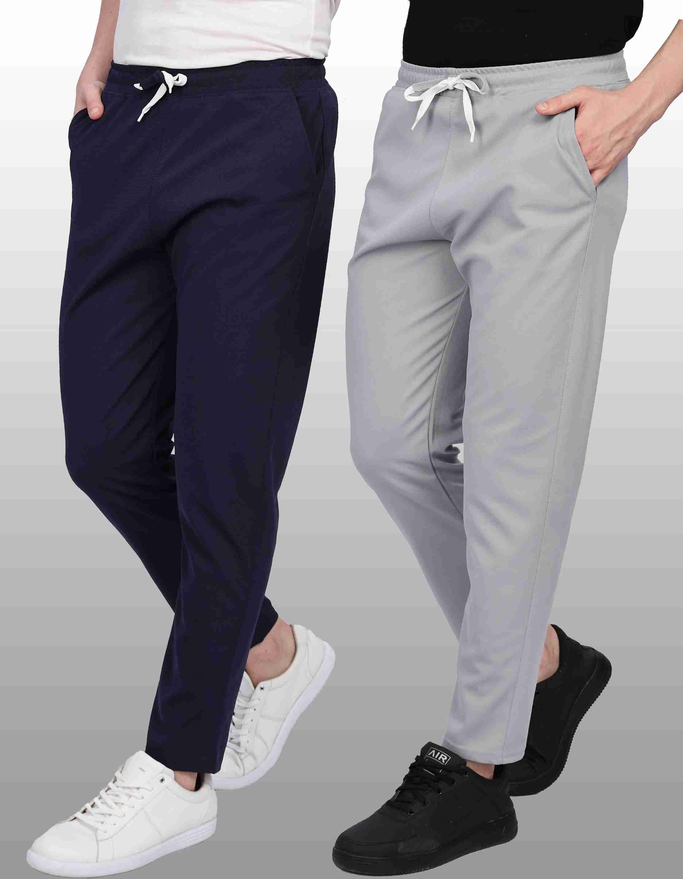 Pack of 2 Men Solid Dark Blue, Grey Track Pants