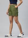 Popnetic Solid Women Dark Green Cargo Shorts