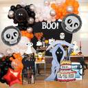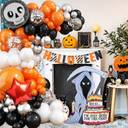 Use our Halloween party decorations trick or treat balloon garland arch kit can add more fun atmosphere. With different sizes orange, black, white balloons and ghost foil balloons for Halloween decorations create a unique halloween backdrop and have a horrorable and wonderful Halloween party!