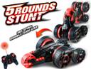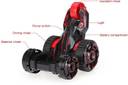 This is a full function double-sided stunt RC car. It can move forward, backward, turn left, turn right, tumbling and 360 degree rotation. Using abs engineering material, bright, non-toxic and environmental protection. It has strong rock crawler ability and cool light. With high quality abs material and solid frame chassis, this car has superior impact tolerance. It can make some different stunt actions. And the car can run on land, sandy beach, wetland, grassland. It will be a good gift for children.