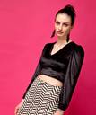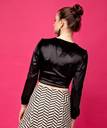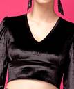 Popwings Women Casual Black Velvel Full Sleeve Crop Top