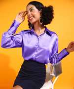 POPWINGS Women Solid Casual Dark Blue Shirt