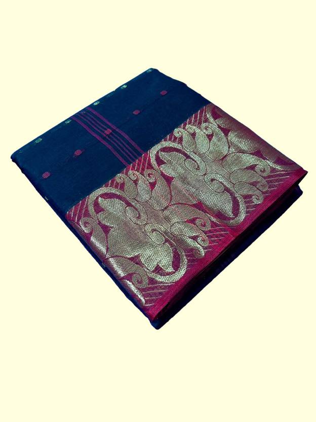 WoodenTant Navy Blue Cotton Designer Wear Handloom Tant Saree With Zari border and Buti Work with Starch on Saree . This tangail style tant saree can be worn with plain red or golden color blouse piece.This pure cotton tant saree do not have blouse piece. Bengali Tant Saree. This is 100% genuine woven thread buti work and designer border work saree. This is not simple print saree rather buti and border was made by thread work. This hand woven saree is authentic pure Bengali tant saree with high quality starch on it.