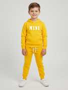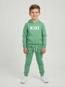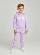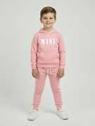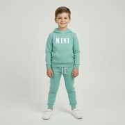 Premium Softness: Made from a cozy fleece fabric that feels gentle against the skin for all-day comfort., Durable Quality: Constructed with strong stitching to withstand active play and frequent washing., Easy Movement: Designed with a relaxed, athletic fit to ensure unrestricted movement for running, jumping, and lounging., Quick Dressing: Pull-over hoodie and easy pull-on joggers make dressing simple for kids and parents., Secure Fit: Features snug ribbed cuffs on the ankles and wrists to keep warmth in and sleeves/pants from riding up., Versatile Layering: Perfect as a standalone outfit or a warm layer for cooler weather., Stylish Detail: Bold "MINI" print adds a trendy, urban look.