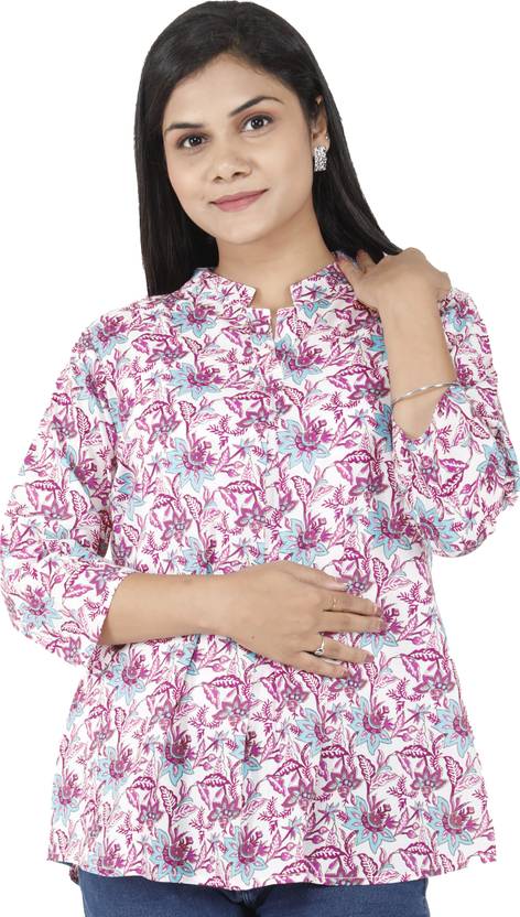 Women Printed Pure Cotton A-line Kurta (Pink)