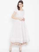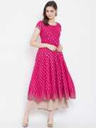 Gold Print Anarkali has Round Neck, Side Zipper, Cap sleeve, Ankle Length with one pair of Golden Beautiful Latkan (Backside).Total Fabric to make this Beautiful Anarkali is 6 meter.The Length of this Beautiful Anarkali is 51 Inch. This Anarkali has Beautiful Border Hem. The Fabric of Anarkali is 100% Pure cotton. The Pattern, Stitching and Fitting of this Anarkali is superb, You can Buy and try.