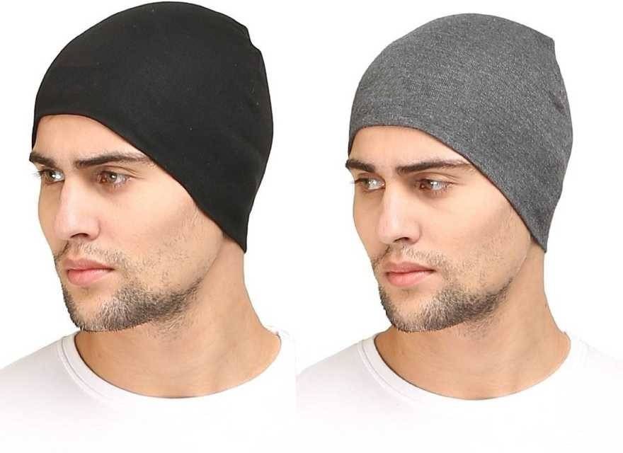 poshing Self Design Skull Cap Cap (Pack of 2)